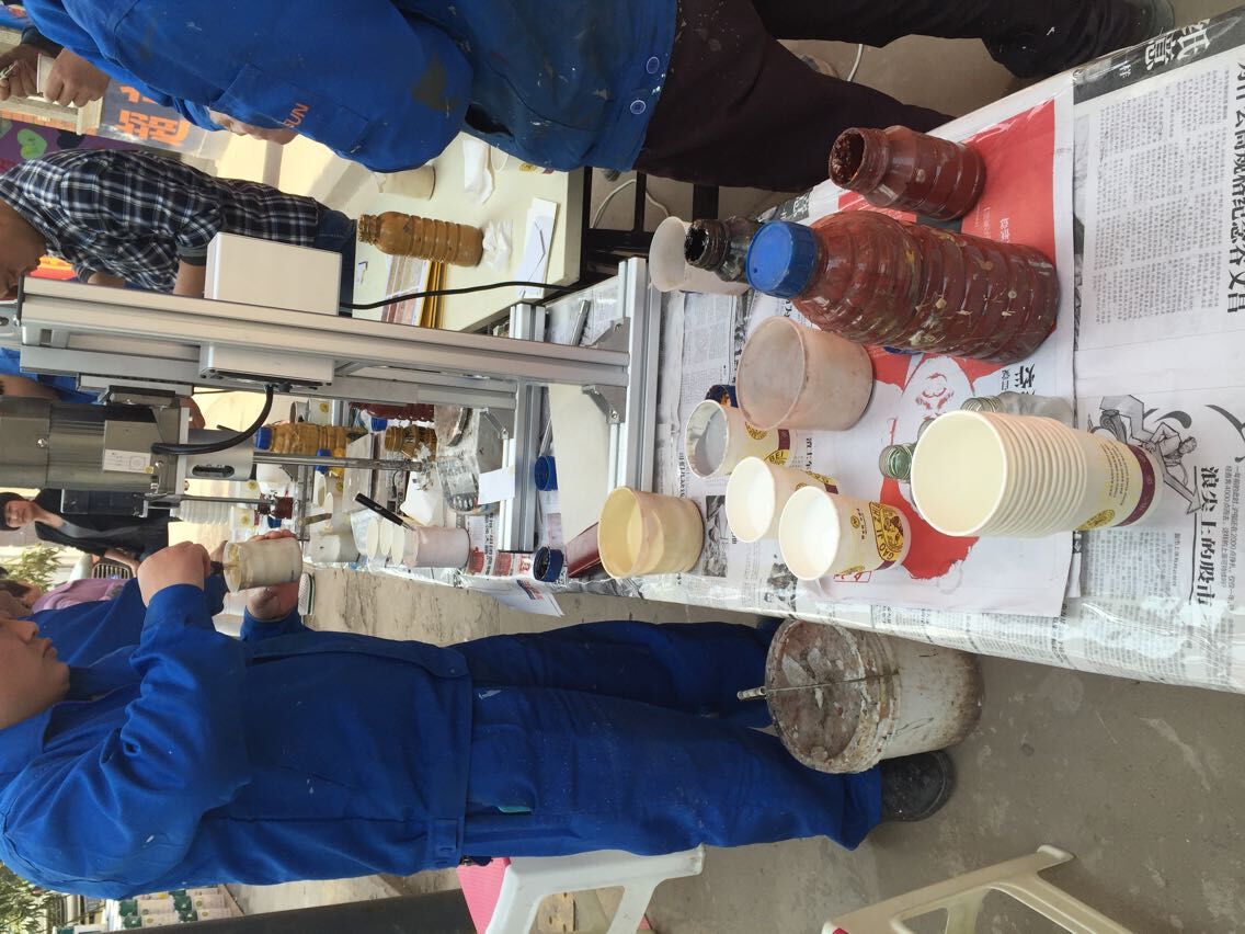2015年4月10號下午,剛上班,負責多彩漆調色的幾位超人就已經集合到比賽區,桌面上也都擺上了各種需要用的器具,然后這幾位超人開始各自拿著自己需要的器具開始調配起來。